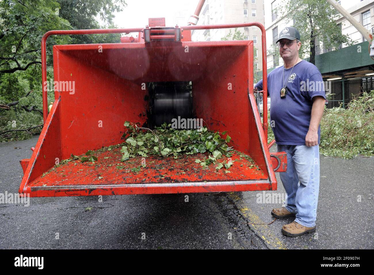 28 August 2011 New York New York City Parks And Recreation Clean Up Crew Clear Fallen Branches And Trim Trees Along East End Avenue Damages Caused Byhurricane Irene Which Was Downgraded